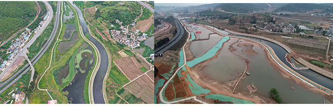 4.楚雄市龍川江西觀橋斷面水體達(dá)標(biāo)工程,通過實施污染底泥疏浚、橡膠壩、生態(tài)河堤建設(shè)、生態(tài)濕地恢復(fù)等一系列水環(huán)境治理及水生態(tài)修復(fù)工程,龍川江西觀橋國控斷面已于2019年從重點整治的劣Ⅴ類國控斷面之一脫劣,提前一年達(dá)到水環(huán)境功區(qū)劃IV標(biāo)準(zhǔn)。