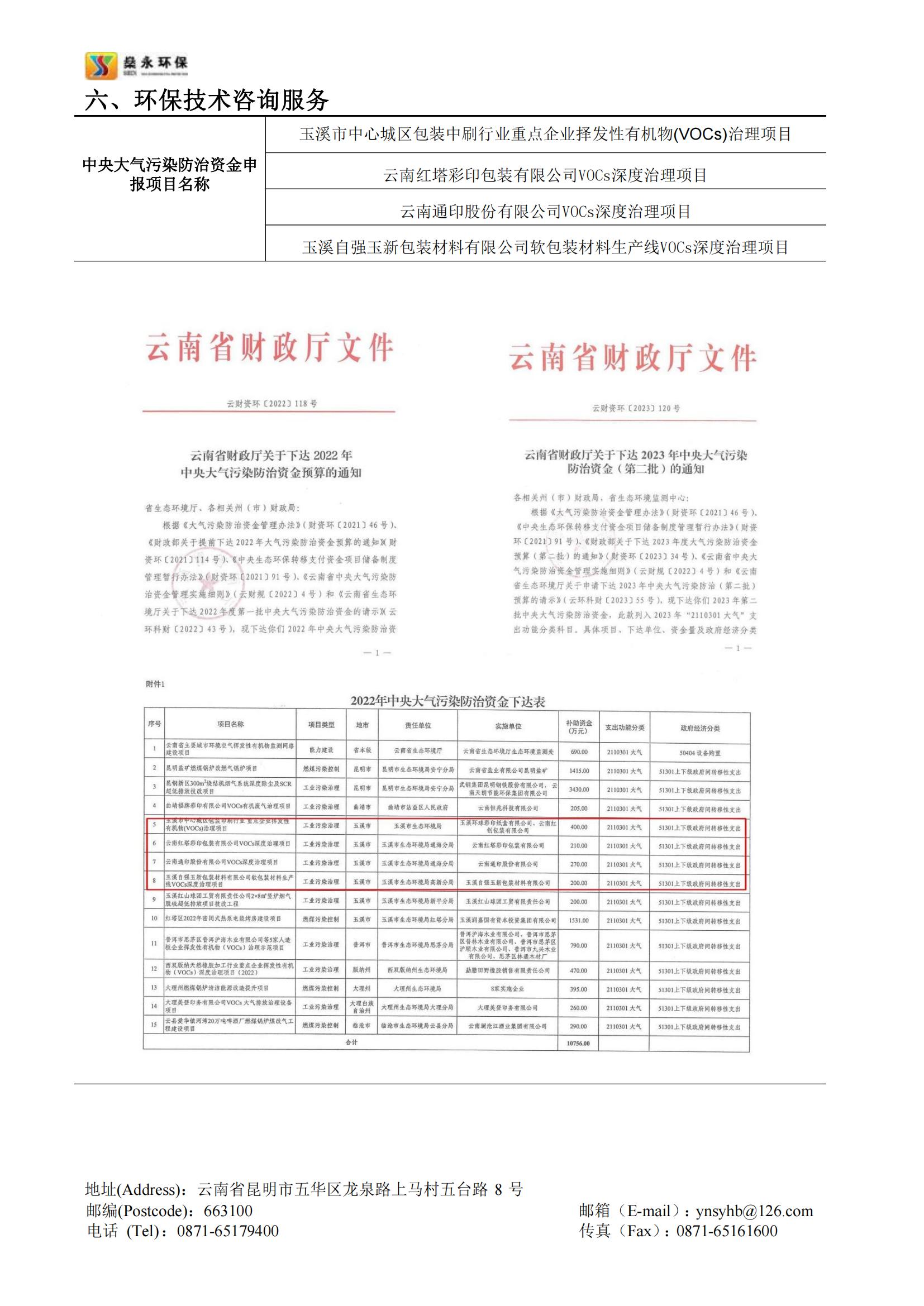 截止2023年10月,公司幫助云南省多個(gè)行業(yè)企業(yè)成功申報(bào)的中央大氣污染防治資金已入庫項(xiàng)目共計(jì)20余個(gè),申報(bào)項(xiàng)目已獲批總資金近一億余元。公司承接的云南省內(nèi)中央大氣污染防治資金申報(bào)項(xiàng)目申報(bào)成功率高,成效顯著,服務(wù)細(xì)致高效,在云南省中央大氣污染防治資金申報(bào)領(lǐng)域具有豐富的經(jīng)驗(yàn)。